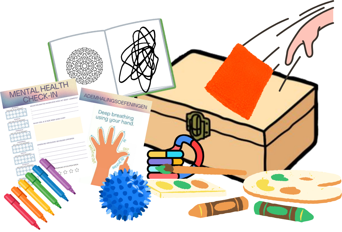 De RoseKit is een houten kist gevuld met alternatieven die helpen bij het stoppen met zelfbeschadiging.